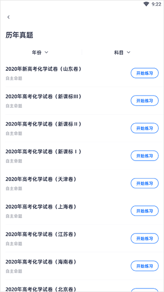 3、还有历年真题,这里提供了诸多往年高考的试卷,用户可以自行选择年份、科目;