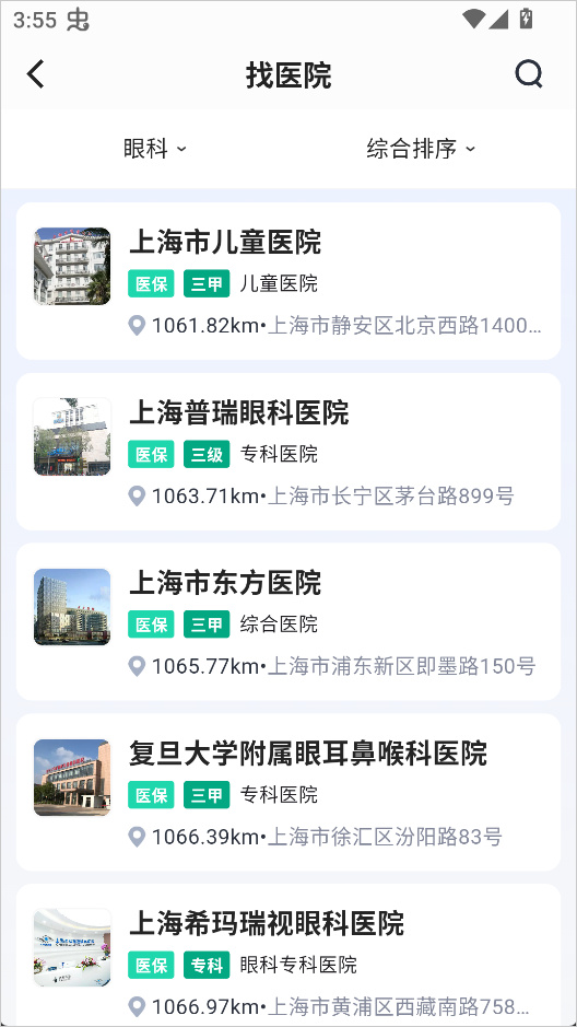 根据用户当前位置推荐当地医院,或者指定一线城市医院,查找方便。