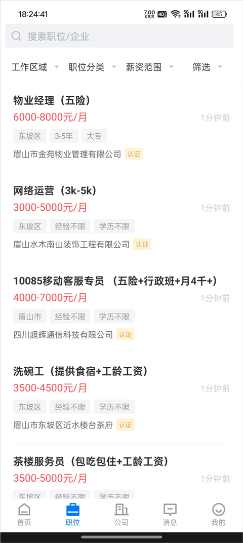 5、附近职位:搜索结果页可查看附近职位,找到离你最近的好工作