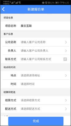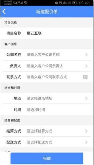 3、进入新建报价单页面,按照提示填写相关信息,项目名称是必填项其他为选填项;