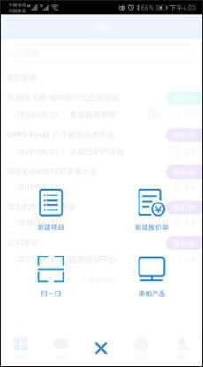 1、进去云报价APP后,项目列表页为首页,点击”+”按钮开启手机做报价