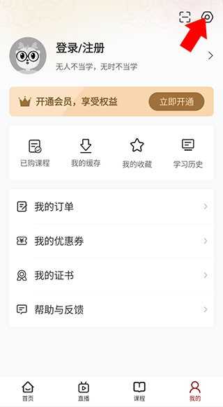 2、之后在【我的】界面点击右上角齿轮进入设置界面