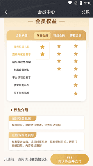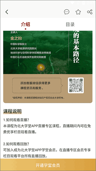 2、然后,在这一界面看清楚了视频内容后找到并点击“开通学堂会员”按键;