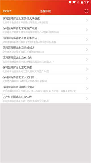 2、然后选择一家离你最近的电影院;