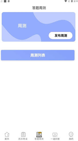 4、进入答题周测,可以发布答题周测,也可以查看自己发布的周测试卷。
