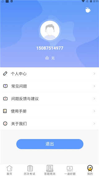 3、点击历次考试,可以常看之前的考试纸卷和成绩。