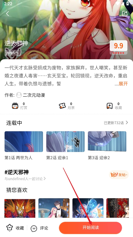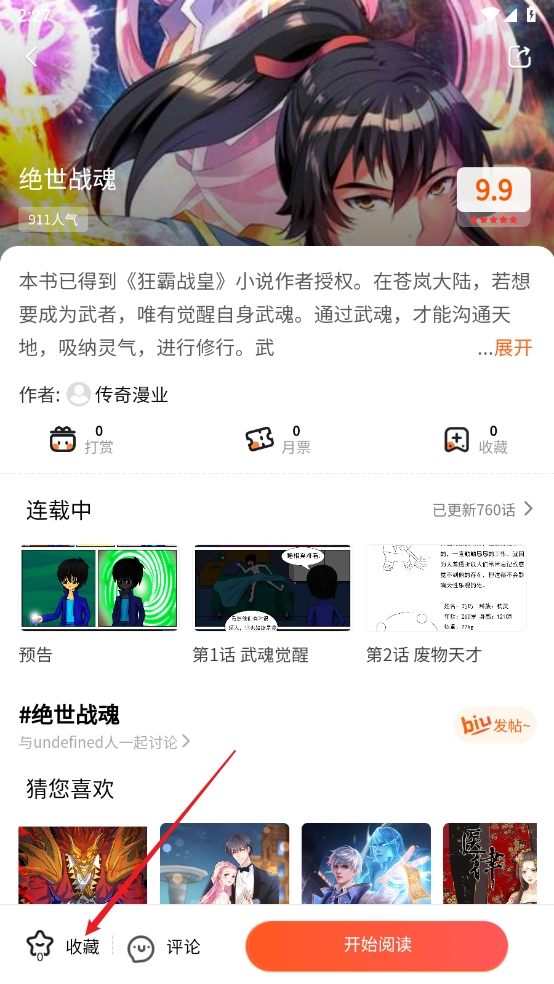 2、一键点击进入漫画详情页,点击左下角的"收藏"即可。