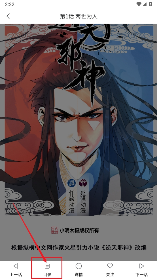 3、然后点击中间区域呼出菜单,点击底部的"目录"。