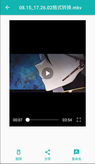 4、等待数秒后,格式就转换成功啦,你可以直接分享视频或者对视频进行重命名