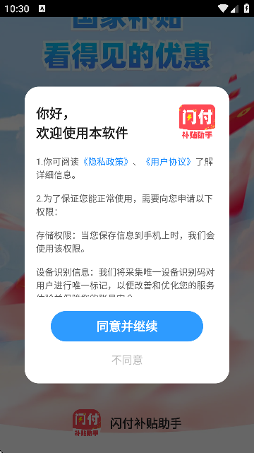 1、下载并安装好这款闪付补贴助手APP,然后打开;