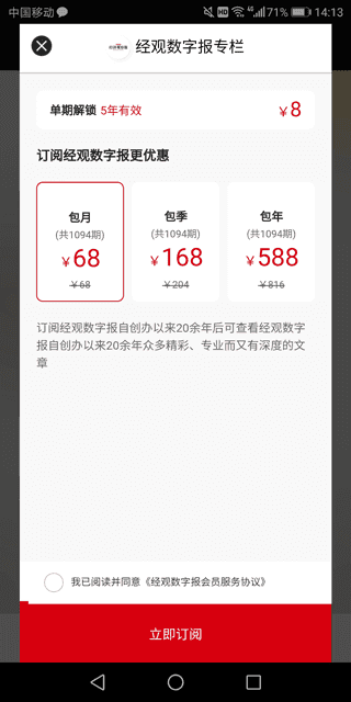 订阅电子版价格如下图所示