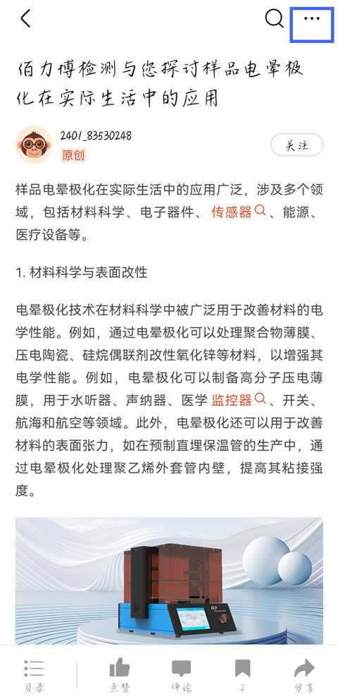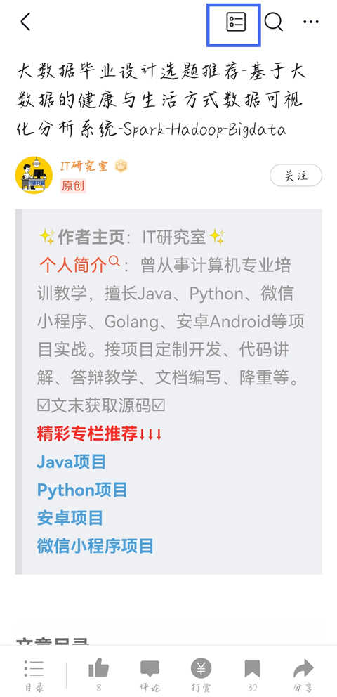 1、进入CSDN app,在文章页面点击点击上方第一个图标。