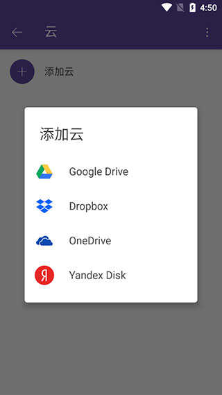 6、点击云,点击添加云,找到你有用的云盘,登录账号即可在主页看到云盘内的内容。