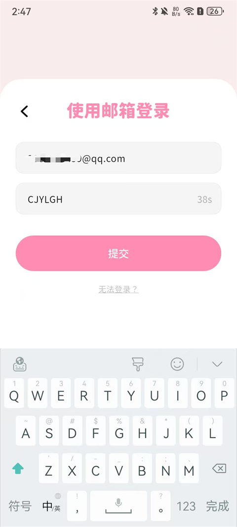 2、Bimobimo是支持QQ邮箱登录的,您可以输入您的QQ邮箱地址和获取的验证码,接着点击【提交】。