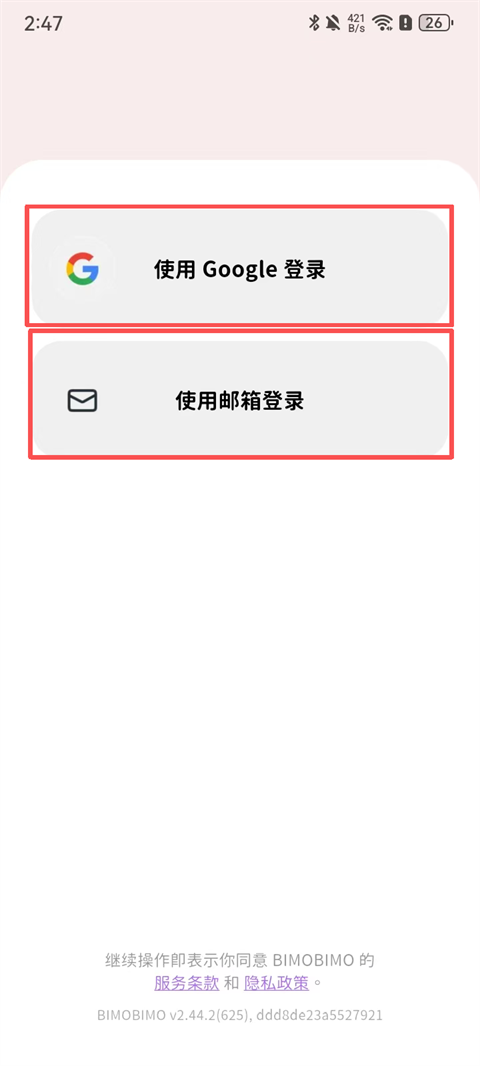 1、打开Bimobimo,软件提供两种登录方式:【谷歌账号登录】与【邮箱登录】;针对国内用户,本次以邮箱登录为例。