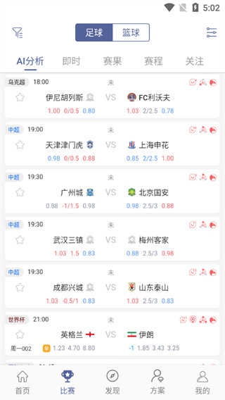 2、在比赛栏可以查看足球与篮球的各种赛事分析,同时还可以查看近期的各种赛程安排。