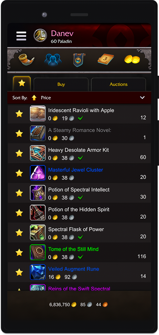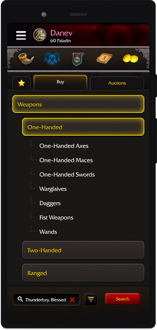 1、进入魔兽世界随身助手后选择拍卖行,选择你要购买的武器。