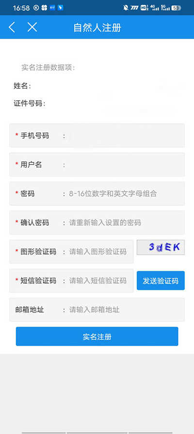 2、选择个人业务,点击用户注册填写自然人的注册信息,填写完整后保存。