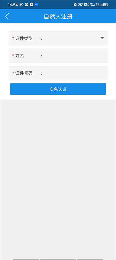 3、然后输入自己的证件信息点击实名认证,这里一定要用本人的,不能够冒名其他的进行,否则无法通过实名认证。