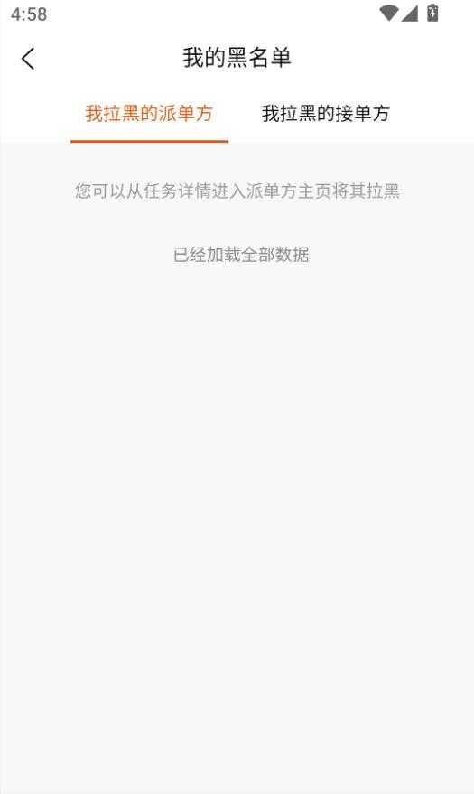 5.最后进入“我的黑名单”菜单界面,就可以查看我已拉黑的派单方信息了
