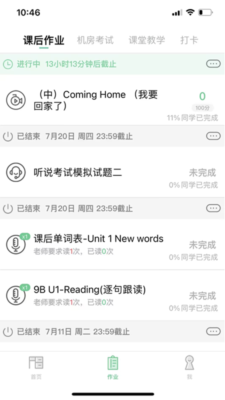 4.首页增加阅读栏目,支持老师布置,增加精选跟读