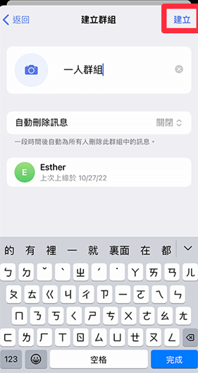 6、现在个人群组会有两位成员,把朋友踢出这个群组里,iPhone 请点选右上角群组大头贴图示,Android 请点选最上方中间的群组名称。