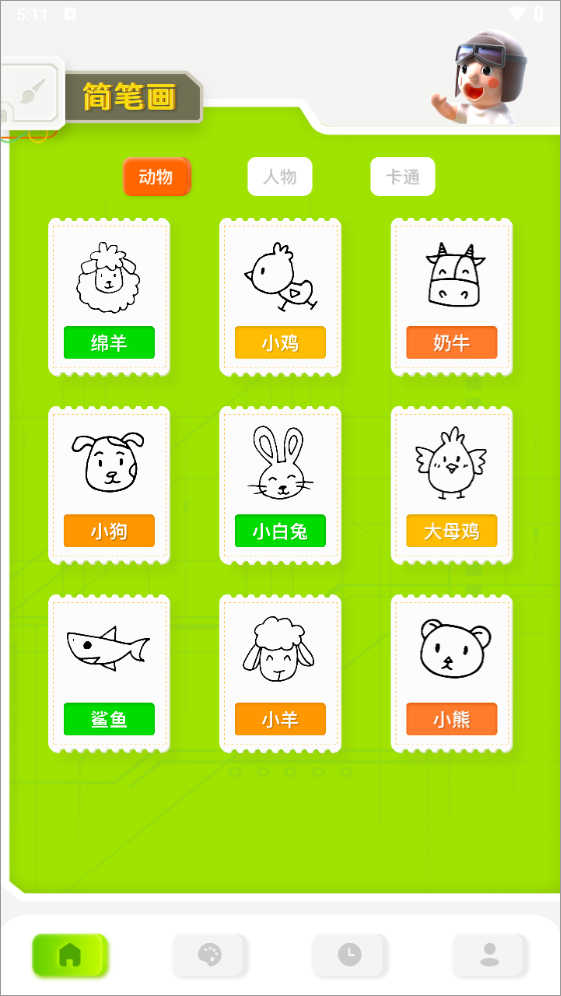 1、首先进入app后,在首页界面随意点击你想要画的动物