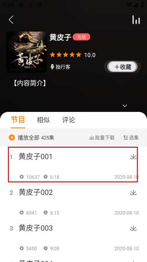 在黄皮子的详情页面中,点击“黄皮子001”,即可进入播放准备页面。