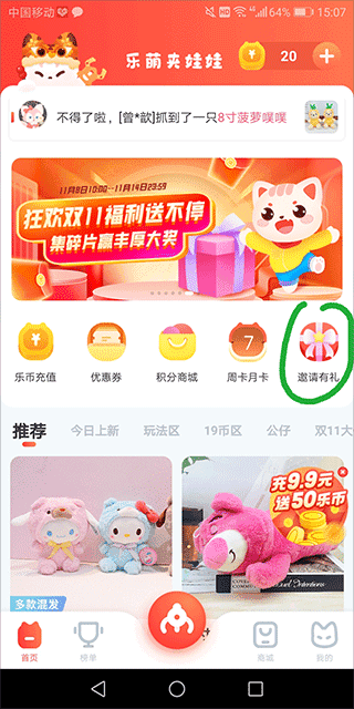 乐萌夹娃娃福利领取教程
