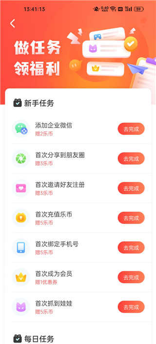 3、每日签到可以领取乐币,每日玩游戏、抓娃娃也可以获取乐币