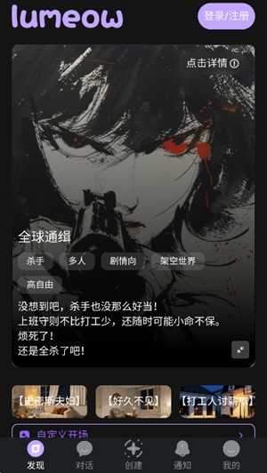 1、lumeow支持从故事开头、情节发展到结局走向全程与AI角色共同创作