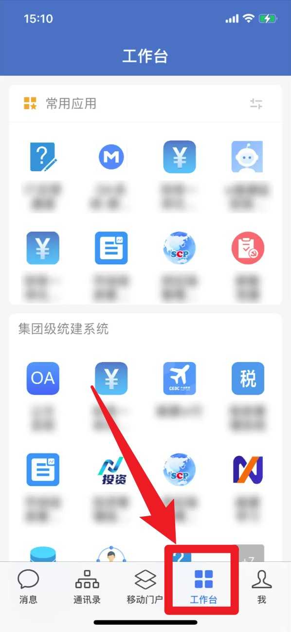 登录成功后进入「工作台」,可快速访问集团系统应用,统一入口一屏整合常用工具。