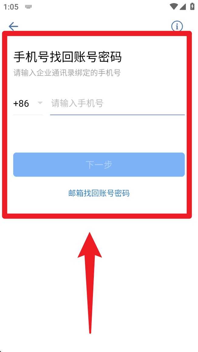 若忘记密码,可点击下方「找回账号密码」,输入绑定手机号,按步骤完成身份验证。
