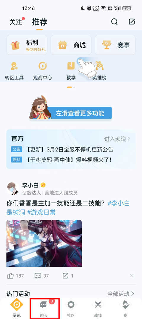 设有英雄专属聊天室与话题板块,方便玩家交流心得、寻找开黑队友。