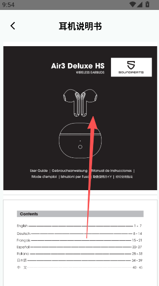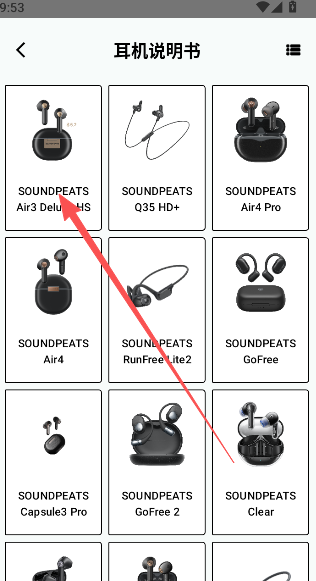 2、在耳机说明书界面,选择已购买的实体设备开始查看说明部分。