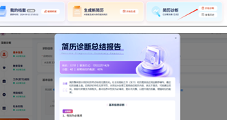 生成简历或导入简历后,在【简历诊断】模块点击【开始诊断】进行简历分析。