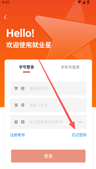 1、就业星密码忘了,可以在用户登录界面点击忘记密码前往找回。