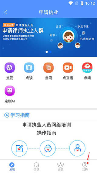 1、首先在手机上打开该软件,如下图所示,任意点击申请执业、律师学院、基层法工等;