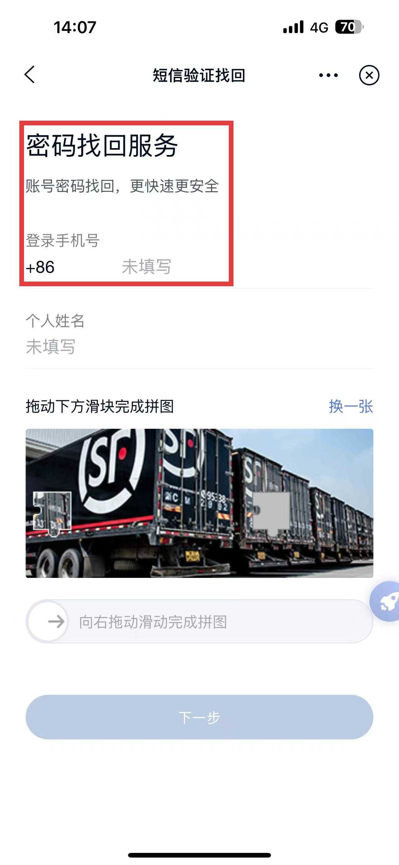 3、另外,如果密码忘记的话也可以利用短信验证找回。