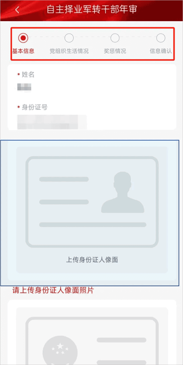 第四步:根据提示,依次进行基础信息、党组织生活情况、奖惩情况信息填报,进行填报时页面自动带入上一年填报的信息,可根据实际情况在此基础上进行相应修改,如存在缺失的信息项则进行填写补充。