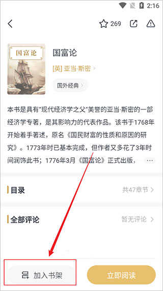 3、进入书籍介绍页面,再点击下方的【加入书架】。