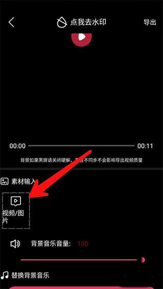 4、打开视频制作界面之后点击下面的素材输入,找到自己喜欢的视频或者图片打开一下;