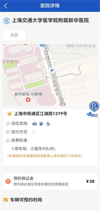 4、选择预约的医院或周边的停车场,点击“立即预约”;
