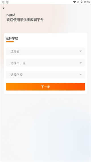 2、新用户选择注册进行登陆,填写孩子的学校学信息,点击下一步。