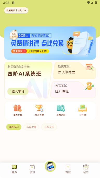 题库系统:海量真题、模拟题、练习题,涵盖教资及多种考试,轻松刷题,查缺补漏。