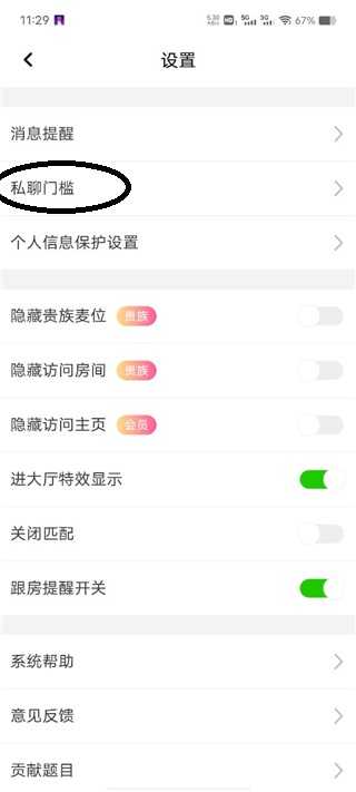 3、随后点击私聊门槛