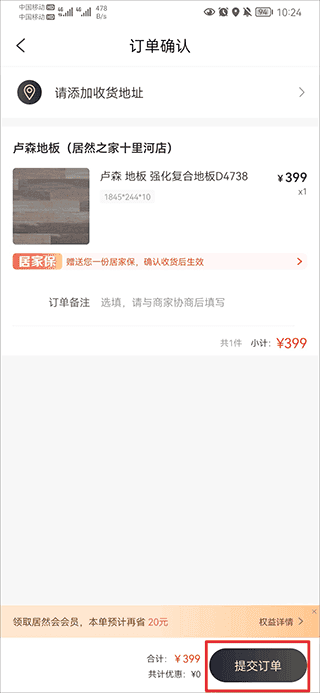 3、在订单确认界面中点击提交订单