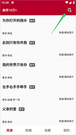 1、打开登录app后进入简谱页面中选择或搜索自己需要制作的曲谱