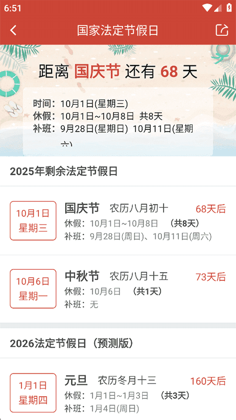 吉祥日历是一款专为中国用户量身定制的智能万年历App,其不仅提供精准的日期查询功能,更整合了传统黄历宜忌、节气节日等特色内容,同时兼具天气预报和备忘记事等实用模块,满足用户对时间管理的多元化需求。当用户提前设定好了之后,再也不用担心重要的事情会忘记,还支持黄历宜忌、节日节气的查询,让你日常生活更加便利。