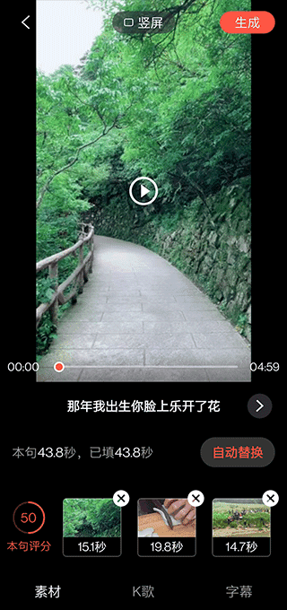 4.<快速制作>支持一键自动填充素材功能,一分钟就可以做大片